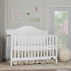 The evolur sawyer 5 in 1 convertible crib is infused with traditional and modern style featuring winged back three quart panel routing lines square brunswick feet and a softly curved fluting on the footboard.